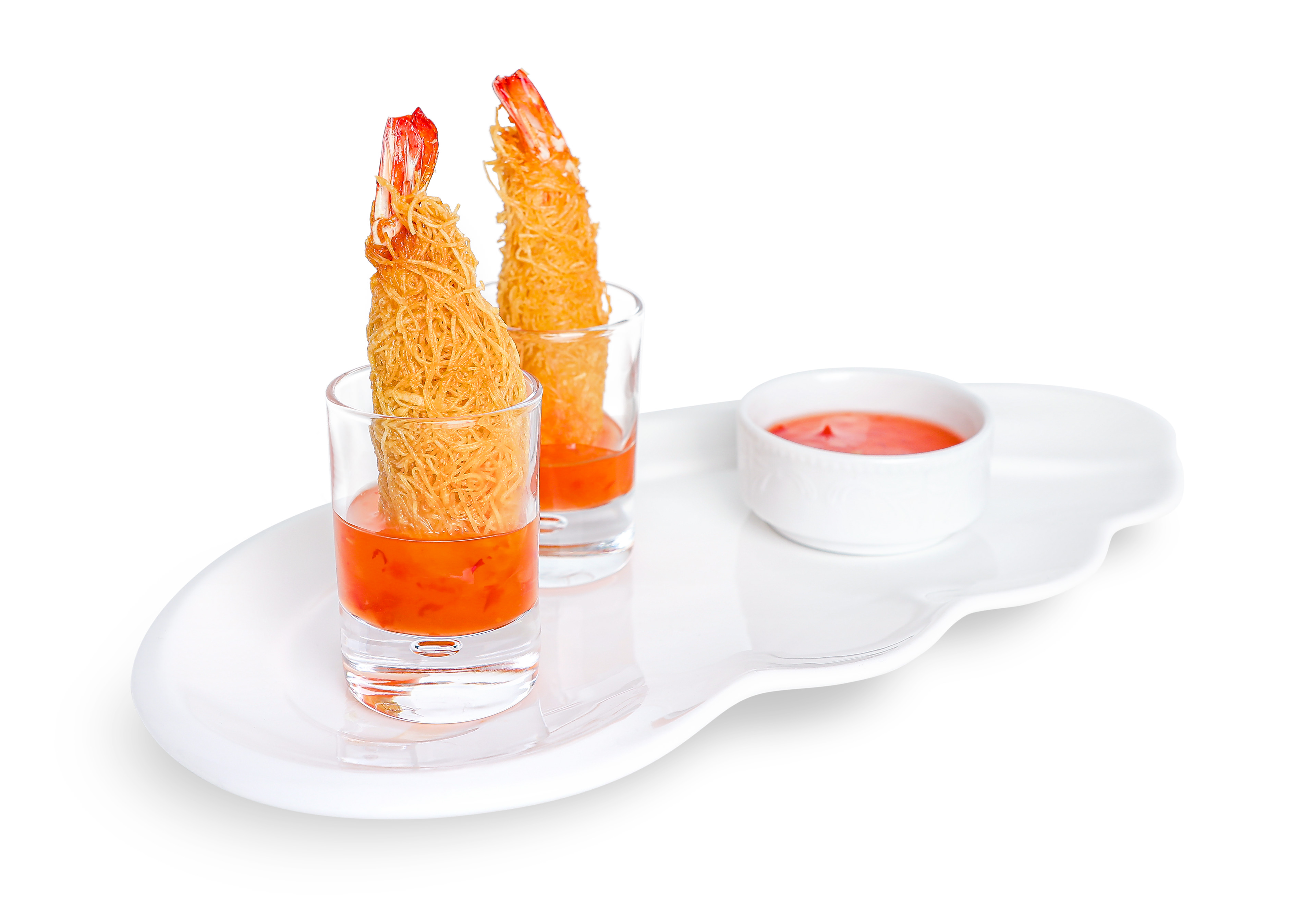 Pişirmiş olduğunuz kadayıflı karidesinizi sweet chili sosuyla tüketmeniz tavsiye edilir.